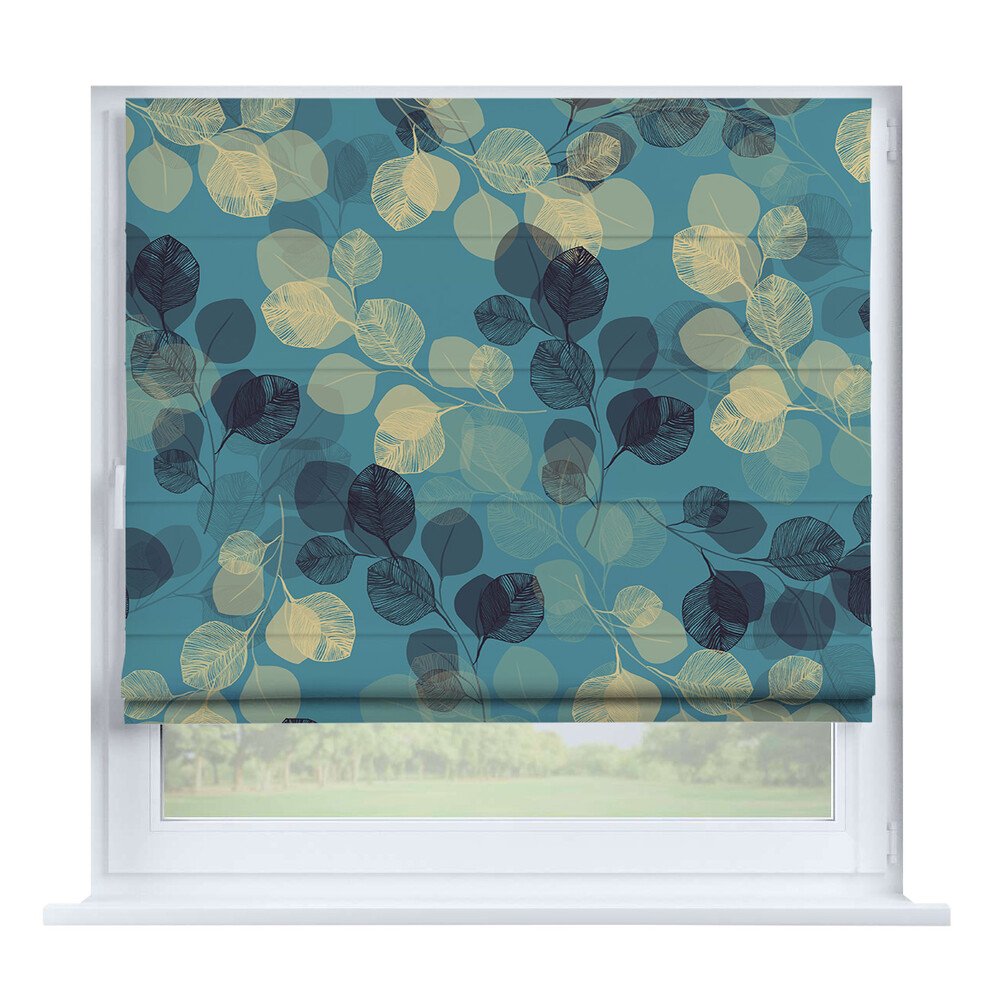 Римская штора день-ночь блэкаут однотонный бирюзовый, карниз верёвочный